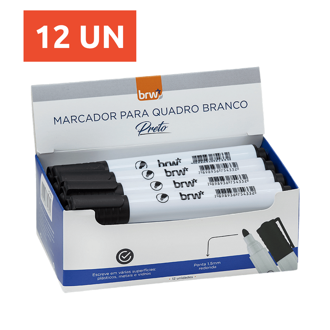 MARCADOR PARA QUADRO BRANCO, RECARREGÁVEL, PRETO, BRW, CA3002, 12 UN