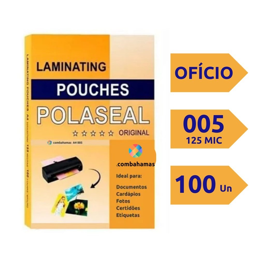 PLÁSTICO PARA PLASTIFICAÇÃO, POLASEAL - OFÍCIO, 222X336X05 - 100 UN
